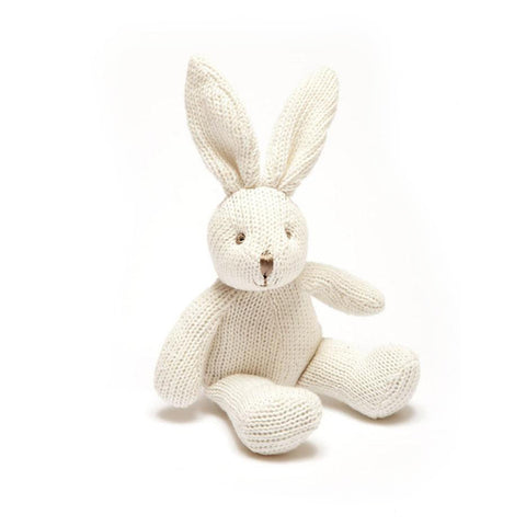 Small Knitted Organic Cotton White Bunny Baby Rattle