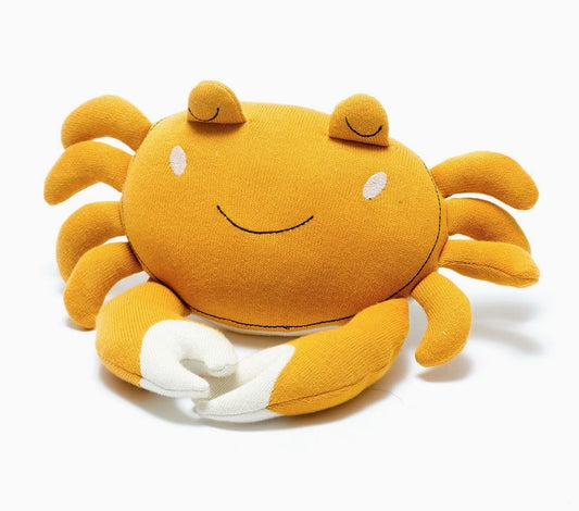 Tactile Crab Plush Toy Knitted Organic Cotton in Mustard