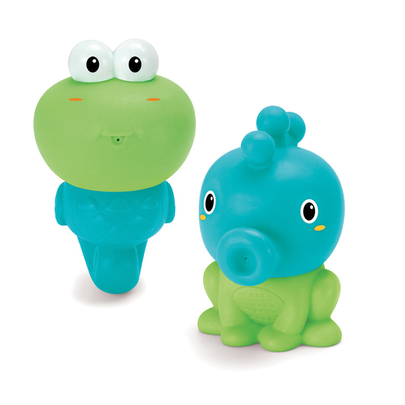 Pull apart the turtle, octopus, sea horse and frog and snap them together to create silly characters. Squeeze the animals pals to squirt a stream of water.