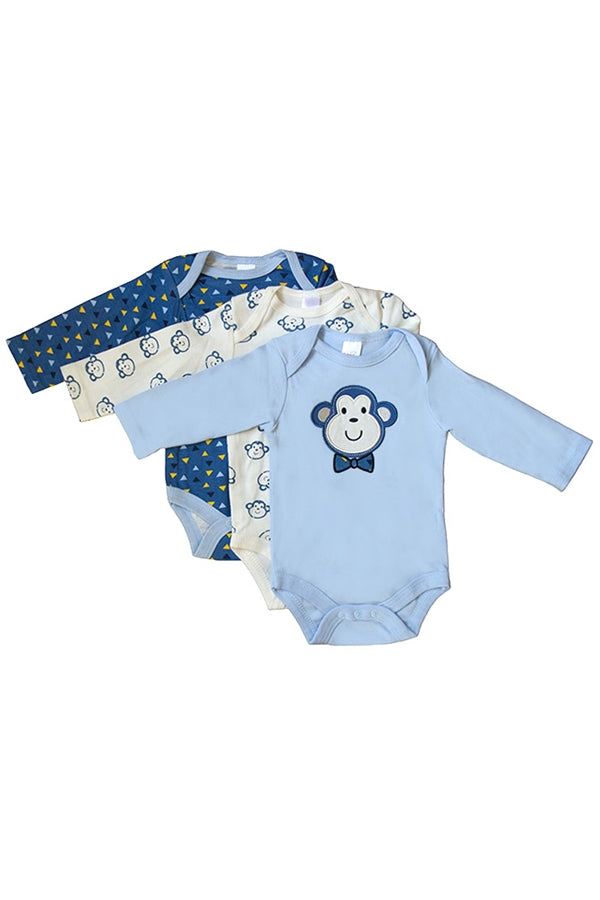 Long Sleeved Blue Monkey Assorted Set of 3 Bodysuits