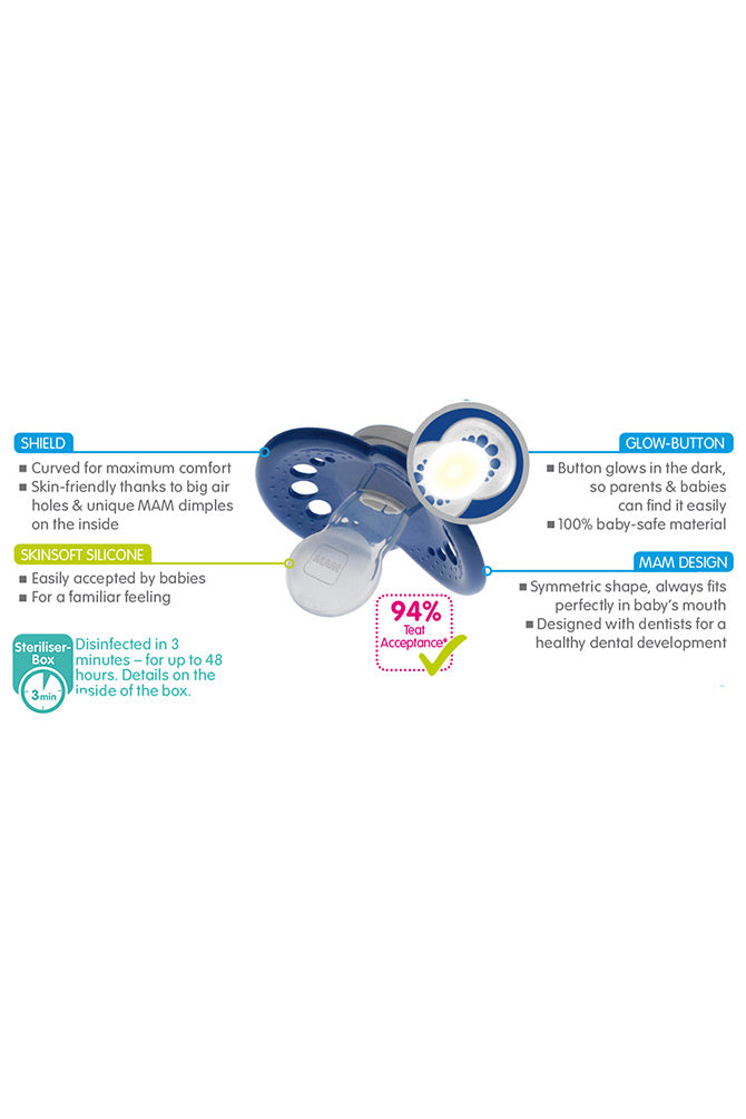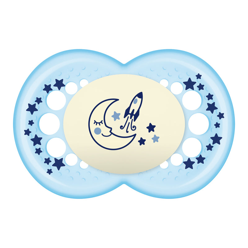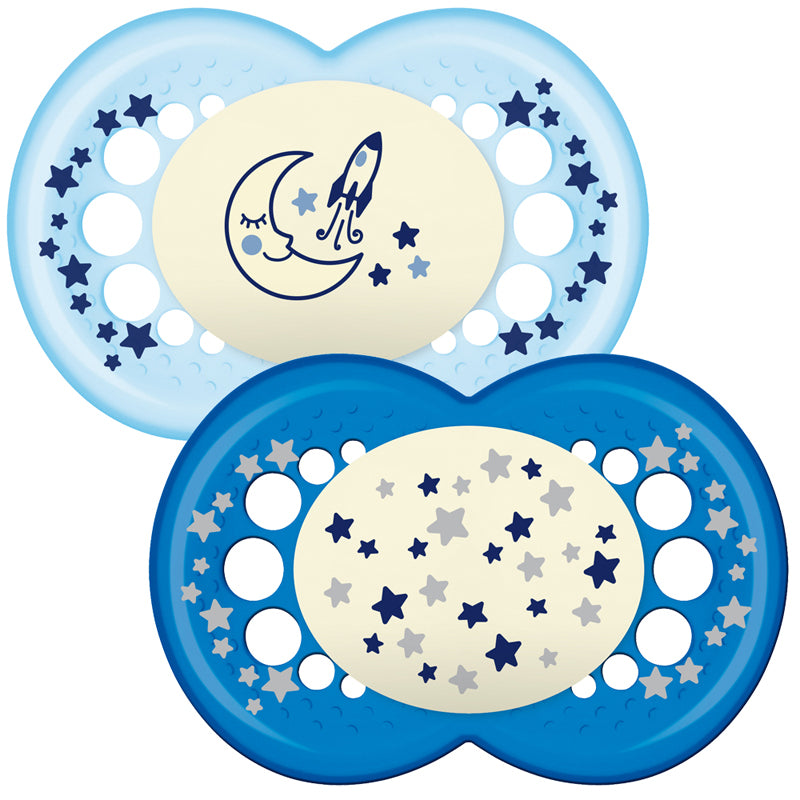 Babies can relax in comfort and style because MAM soothers are created by designers and developed together with dentists and orthodontists. MAM Night soothers glow extra bright at night time; making them easy to find in the dark with little disturbance to your little one.