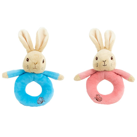 These classic plush ring rattles come in both Peter Rabbit and Flopsy Rabbit.