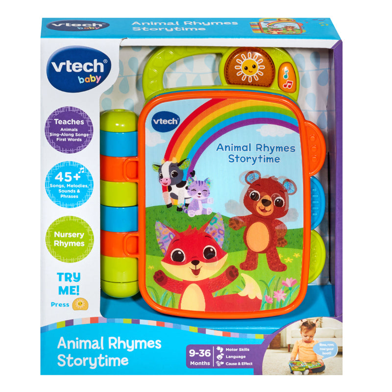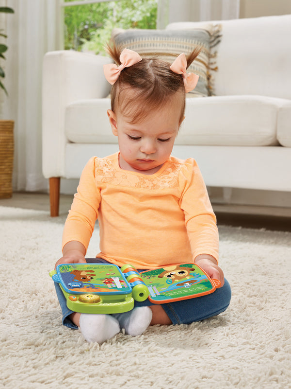 The light up button introduces animals and their sounds. The music button plays upbeat melodies so little ones can groove and move as they play. Turning each page triggers the motion sensor so baby can listen to the songs. Fun sound effects, phrases and light up buttons encourage baby to interact. Develops early language skills, manual dexterity and promotes early reading concepts. Includes 3 sing-along songs and 15 melodies.